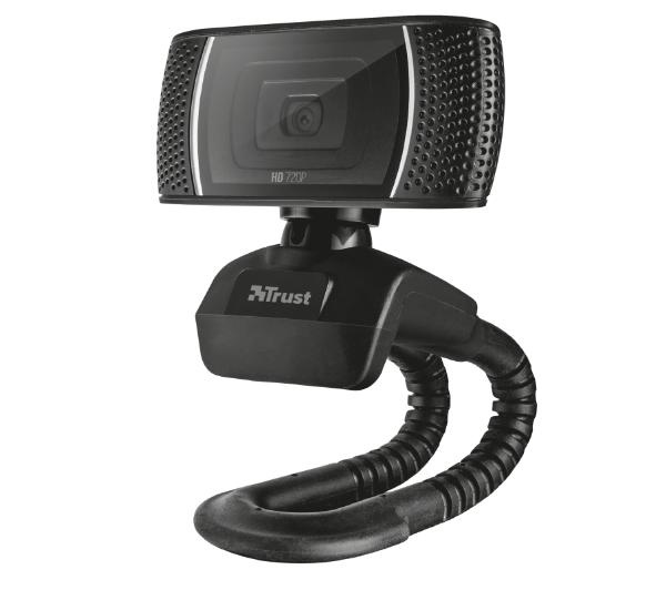 Trino HD webcam from Trust, black. The resolution of the captured video is 1280 × 720 pixels. The camera has a CMOS matrix and is connected via a USB cable.