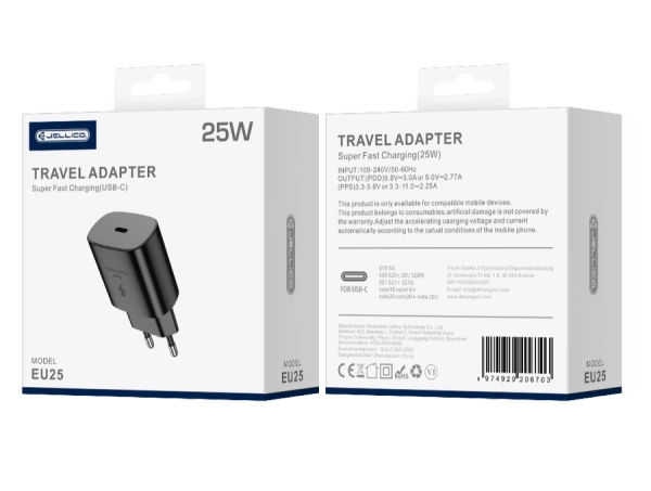JELLICO wall charger EU25 PD 25W 1xUSB-C Black