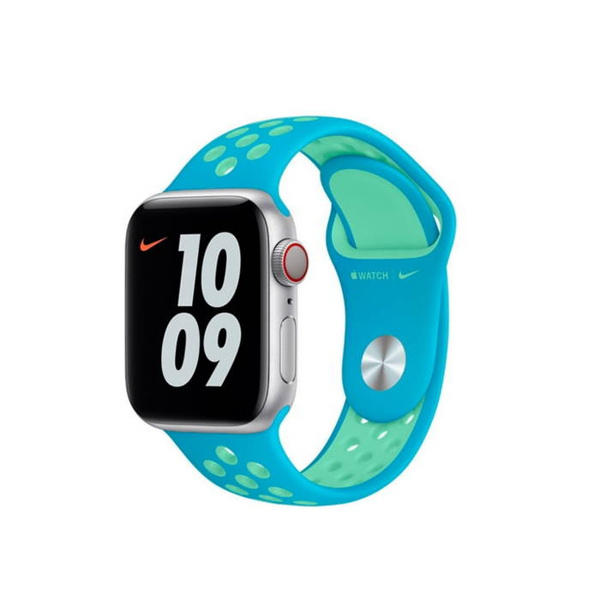 ORIGINAL APPLE NIKE SPORT SILICONE WRISTBAND 44/45/46/49MM CHLORINE BLUE/GREEN GLOW SIZE S/M/L ORIGINAL SEAL