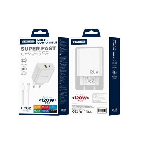 JELLICO wall charger multi-compatible EC02 PD 120W 1xUSB-C + 1xUSB QC3.0 + cable USB-C - USB-C White
