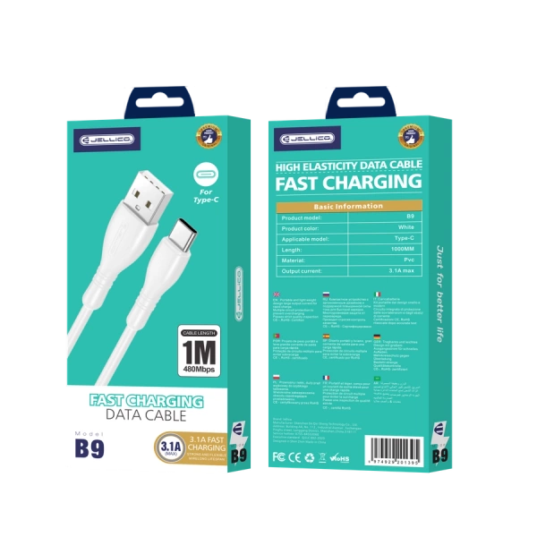 JELLICO kabel B9 USB-C 3.1A 1M Biały