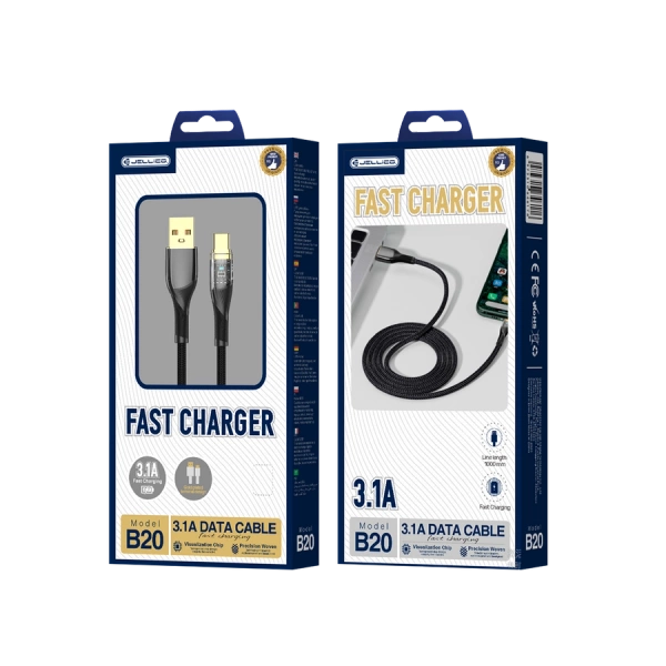 JELLICO kabel B20 USB-C 3.1A 1M Czarny