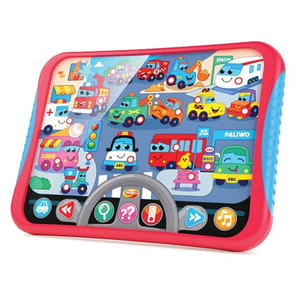 Edukacyjny tablet w przystępny sposób zapozna maluchy z zasadami ruchu drogowego i opowie im o różnych pojazdach, które spotkać można na drodze. W trybie Gra na najmłodszych czeka wycieczka po mieście, podczas, której ich zadaniem będzie naciskać odpowiednie przyciski na zabawce. W trybie quiz, tablet wypowiada rymowane zagadki, a odpowiedź na nie także kryje się wśród obrazków widocznych na tablecie. Zabawę umilą realistyczne odgłosy i aż 7 wesołych melodii. Tablet został wyposażony w regulację głośności oraz przełącznik On/Off.