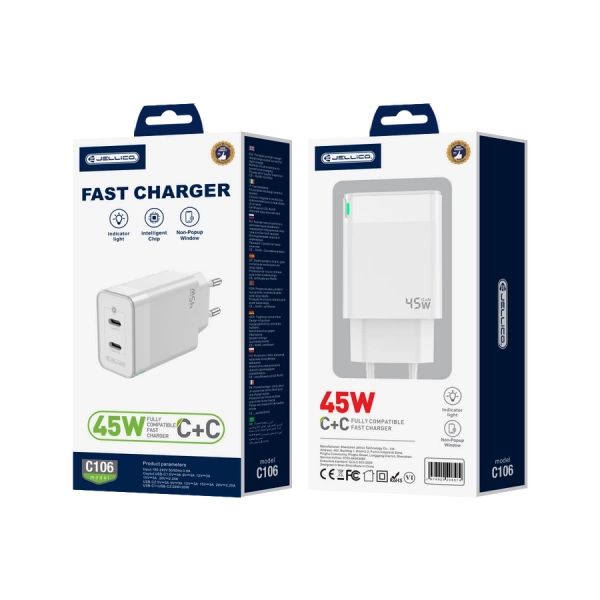 JELLICO ładowarka sieciowa C106 GaN PD 45W 2xUSB-C Biały