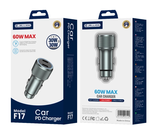 JELLICO ładowarka samochodowa F17 PD 60W 2xUSB-C Czarny