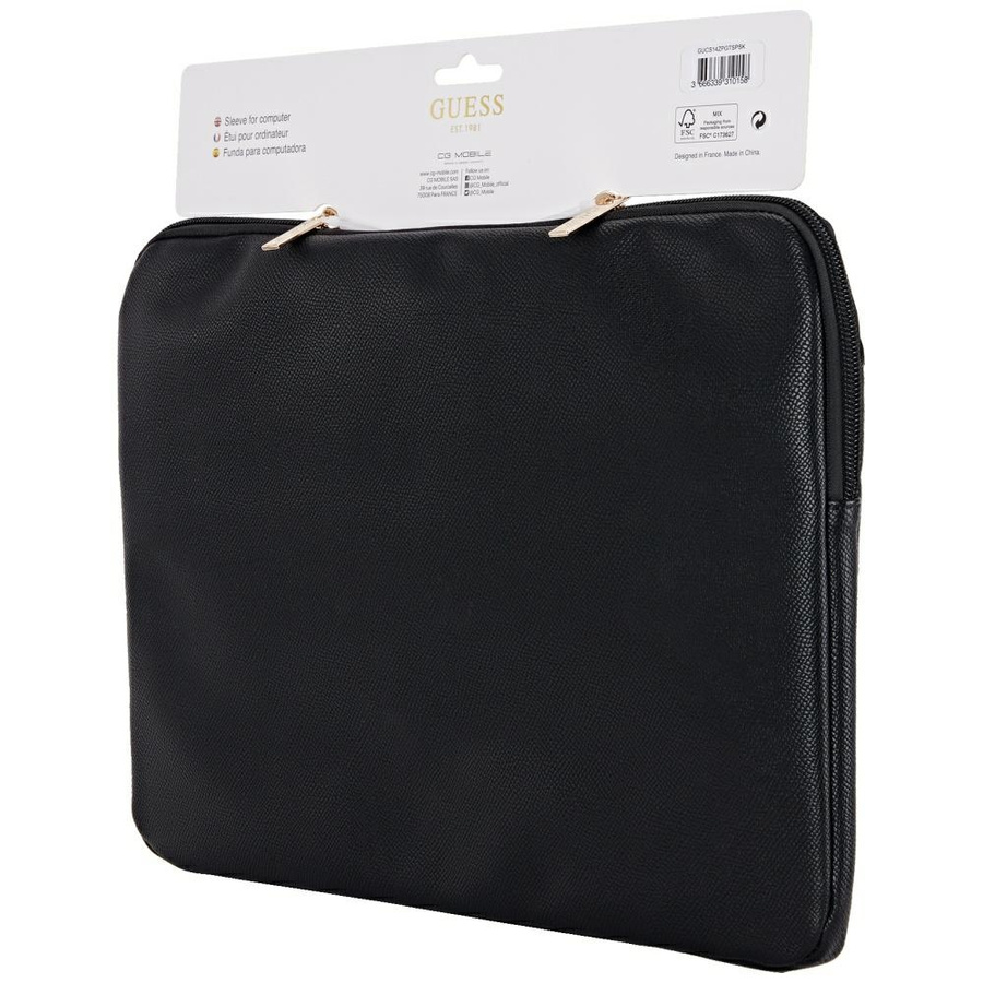 Torba Guess Sleeve 14" Grained Zipper Pocket Triangle Logo czarny