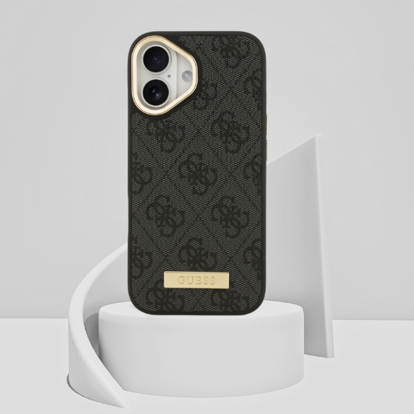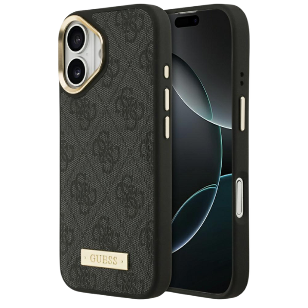 Etui Guess 4G Logo Plate MagSafe do iPhone 17 czarny