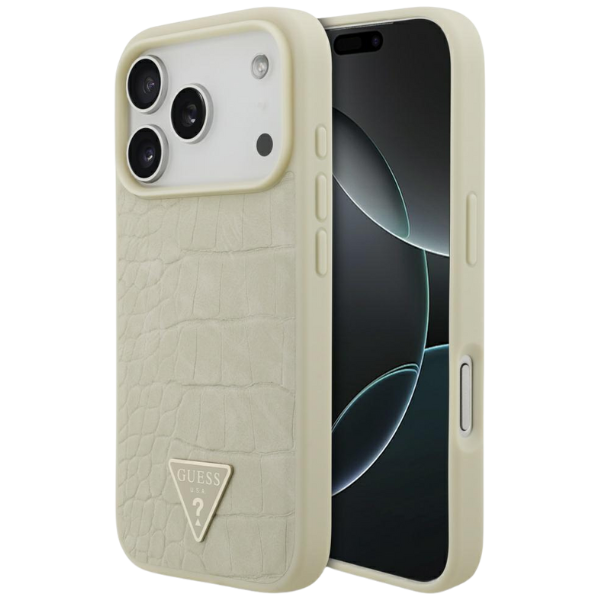 Etui Guess Croco Triangle Logo MagSafe do iPhone 17 Pro złoty