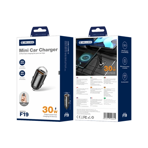 JELLICO ładowarka samochodowa F19 PD 30W 1xUSB-C + 1xUSB QC3.0 Czarny